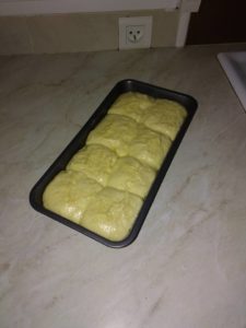 - Couvrir d’un linge propre et laisser pousser 1h30 à 2h selon la chaleur de la pièce. Les boules doivent avoir gonflé jusqu’au 3/4 du moule.