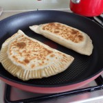 Il est possible de faire plusieurs petits chaussons pour un apéritif ou des chaussons plus gros pour un plat. J’ai divisé les quantités par 2 et j’ai pu réaliser 3 gros chaussons.