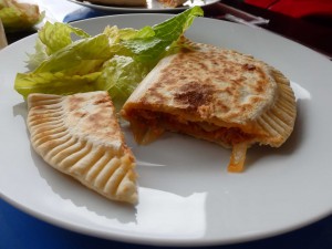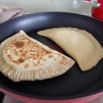 - Mettre la farce sur un coté de la pâte et rabattre l’autre moitié dessus
